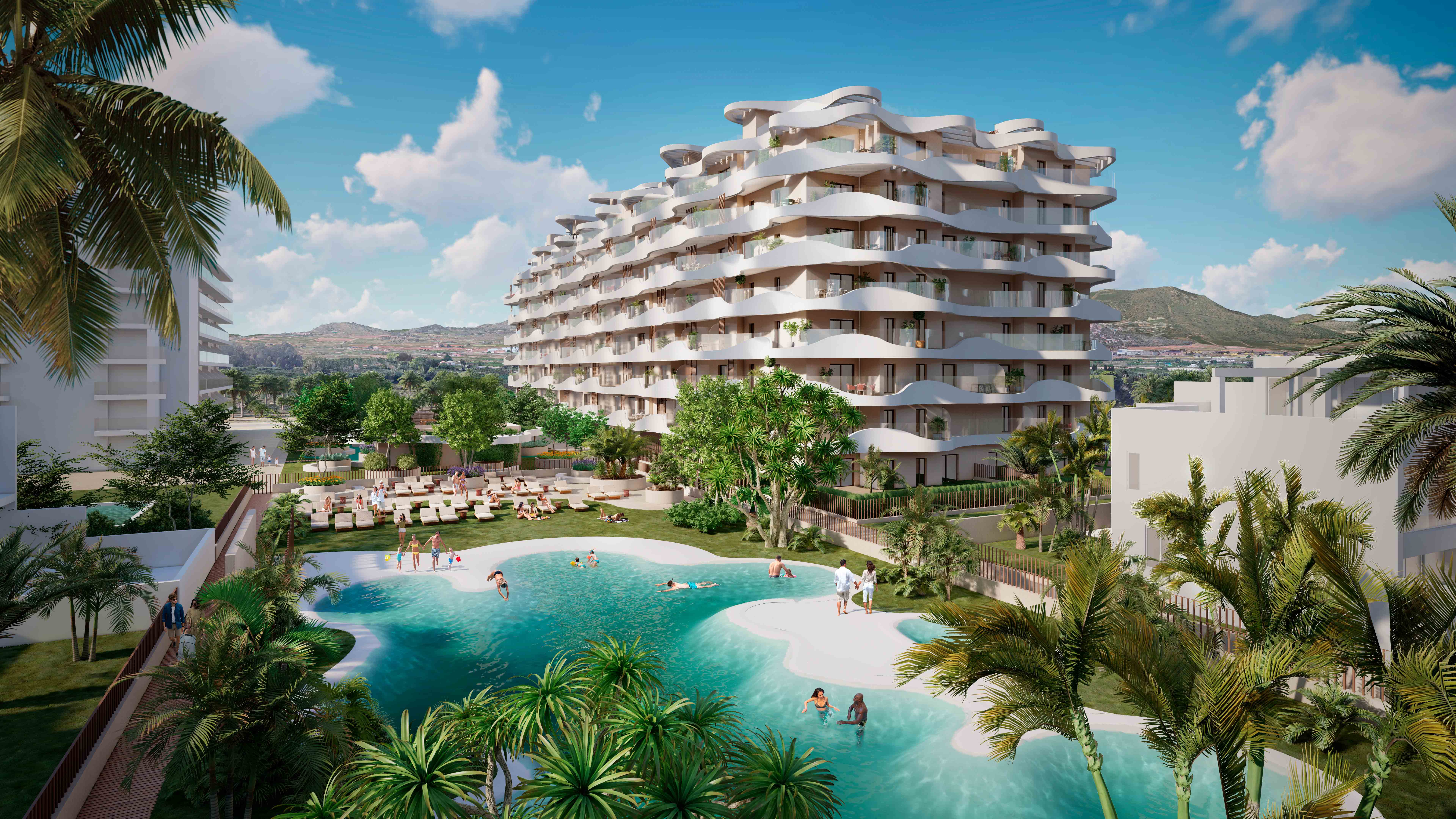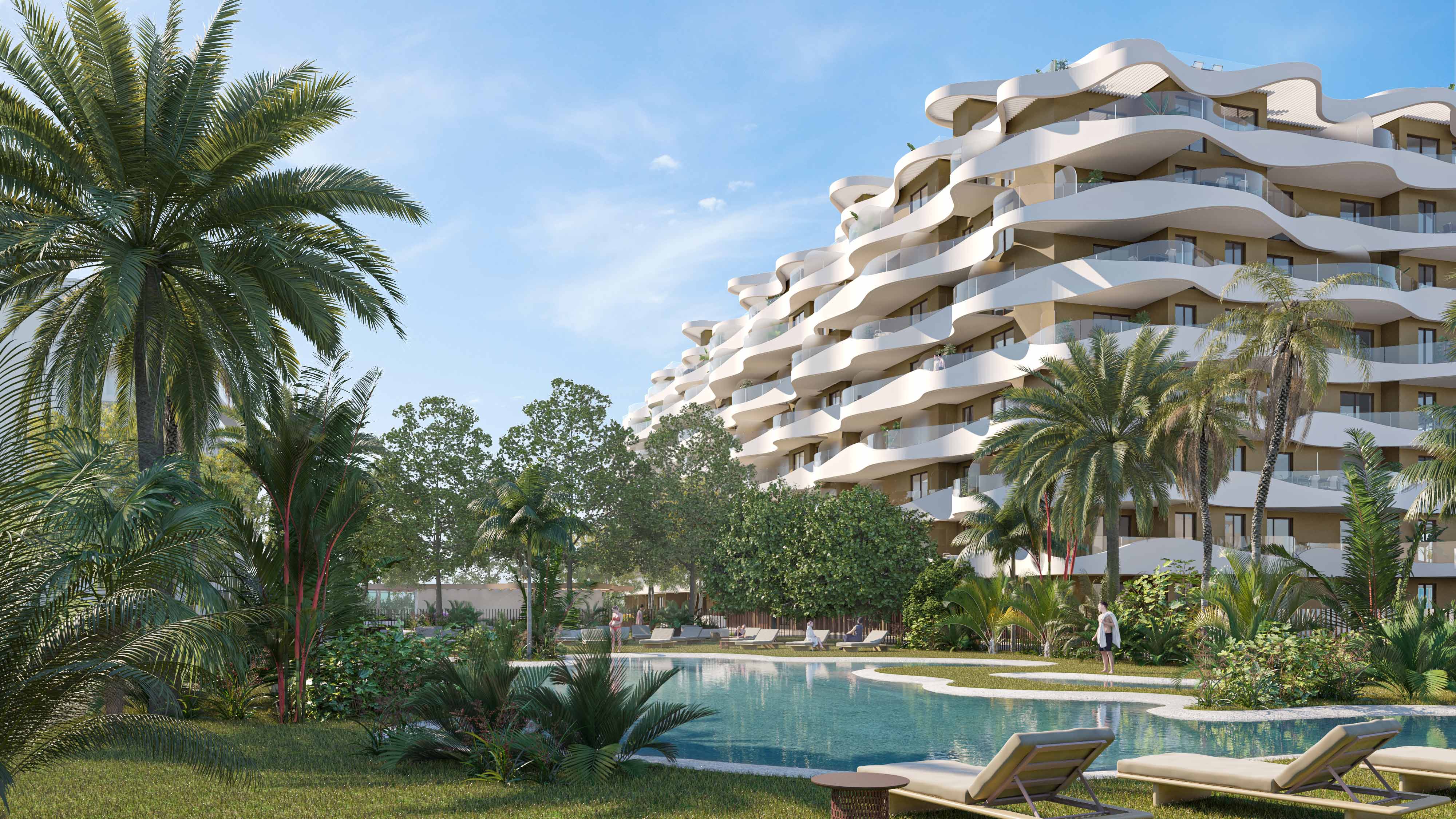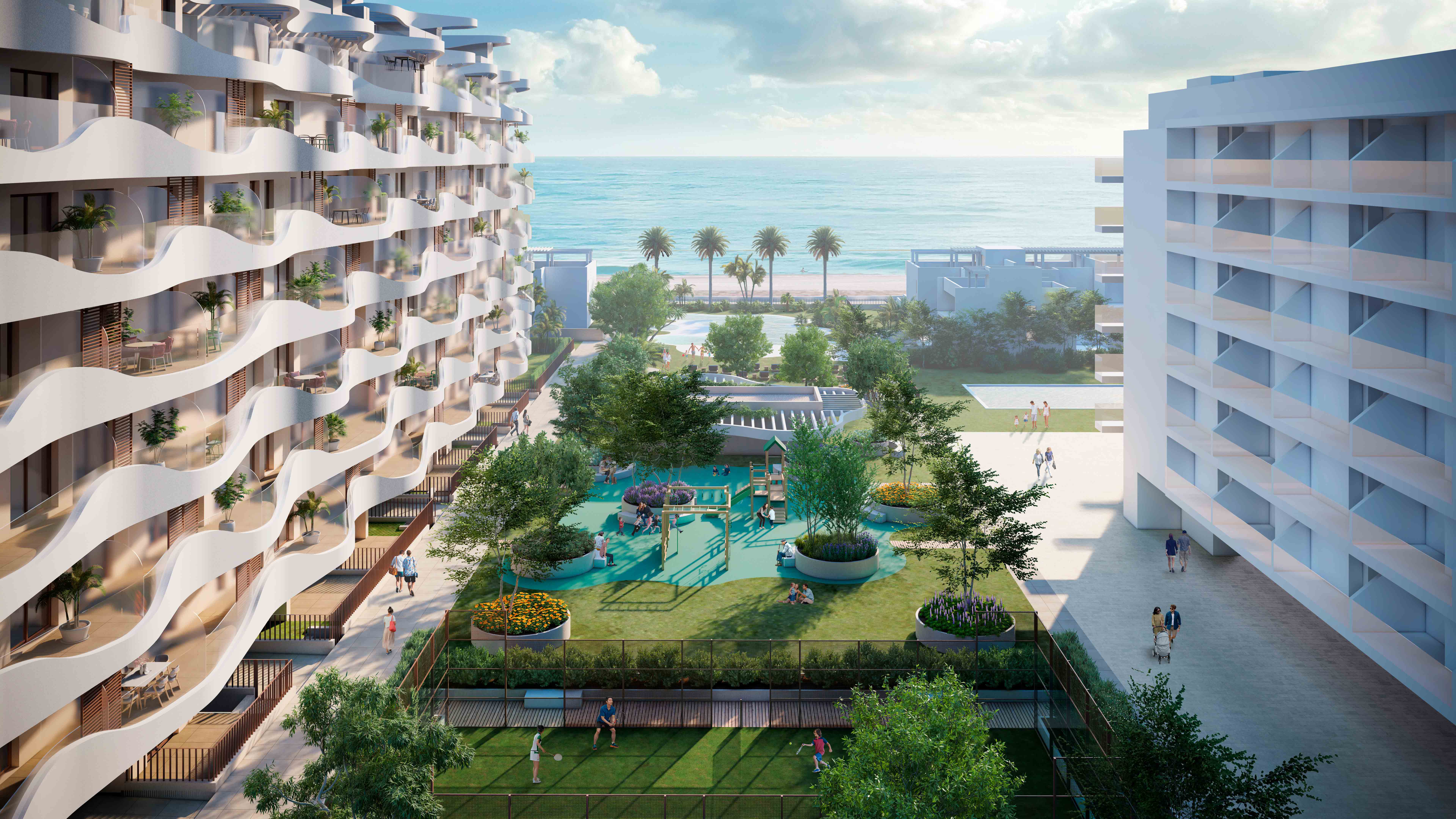 El residencial cuenta con plantas bajas, acceso directo a los jardines privados y áticos con amplias terrazas y unas vistas prodigiosas para disfrutar de las puestas de sol.
